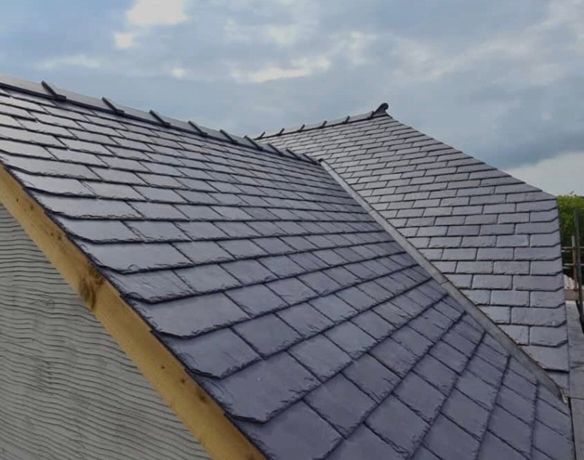 Slates of fixed to the roof using pegs and nails and can be layered for a textured aesthetic.